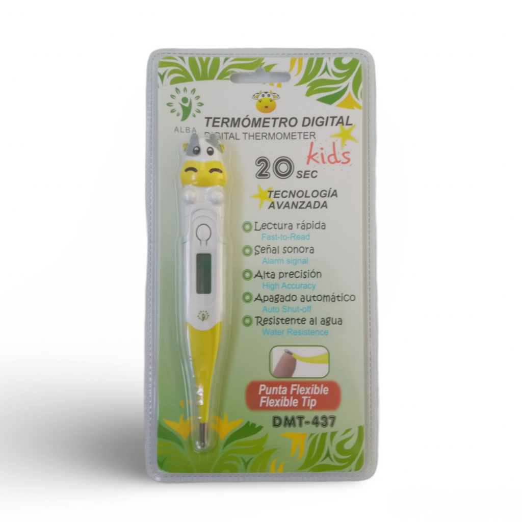Lectura rápida: 20 seg. Señal sonora. Tipo de uso: oral, rectal, y axila. Punta flexible que facilita el uso en niños. Medición grados Centígrados o Fahrenheit. Cambio de pila se indica en pantalla.